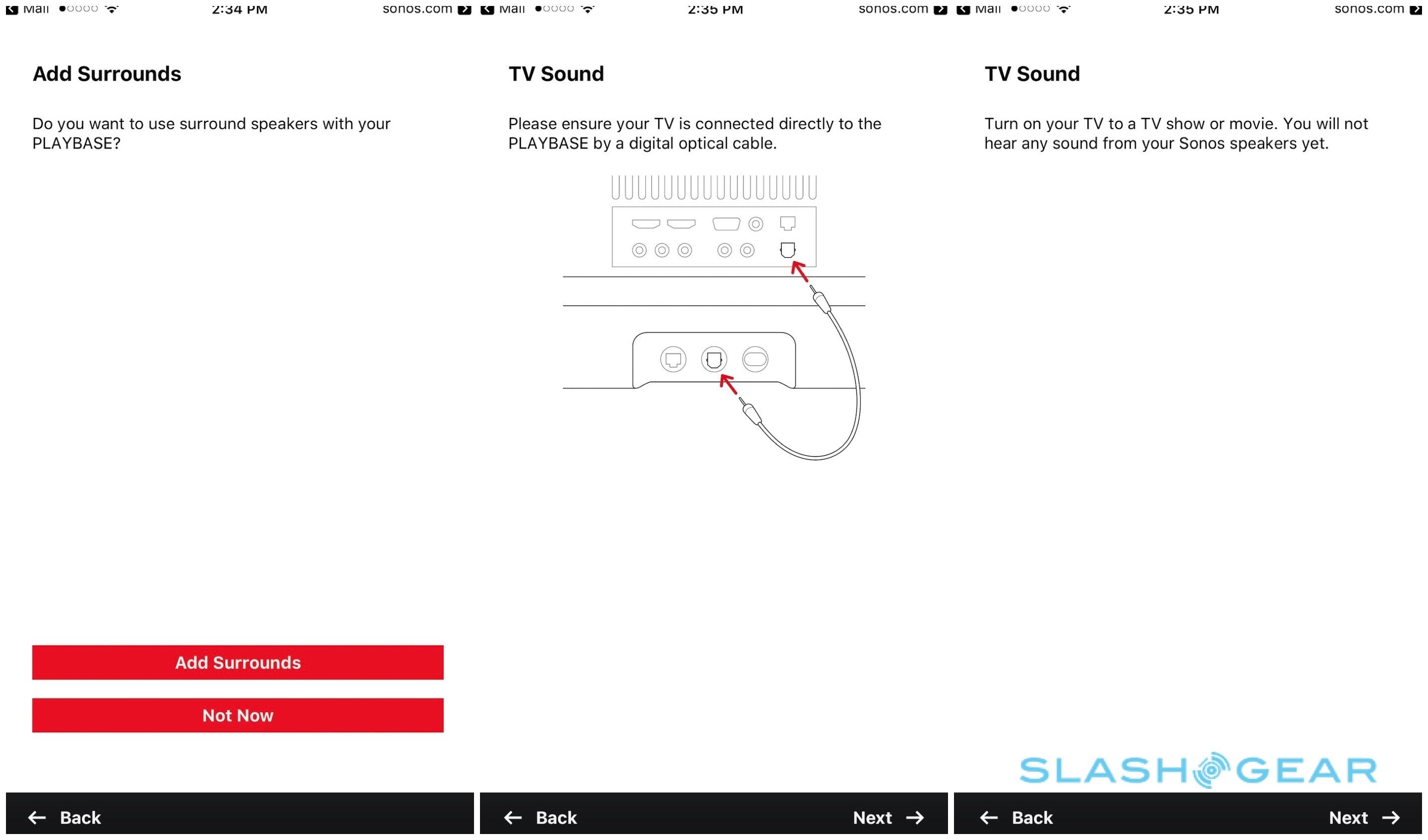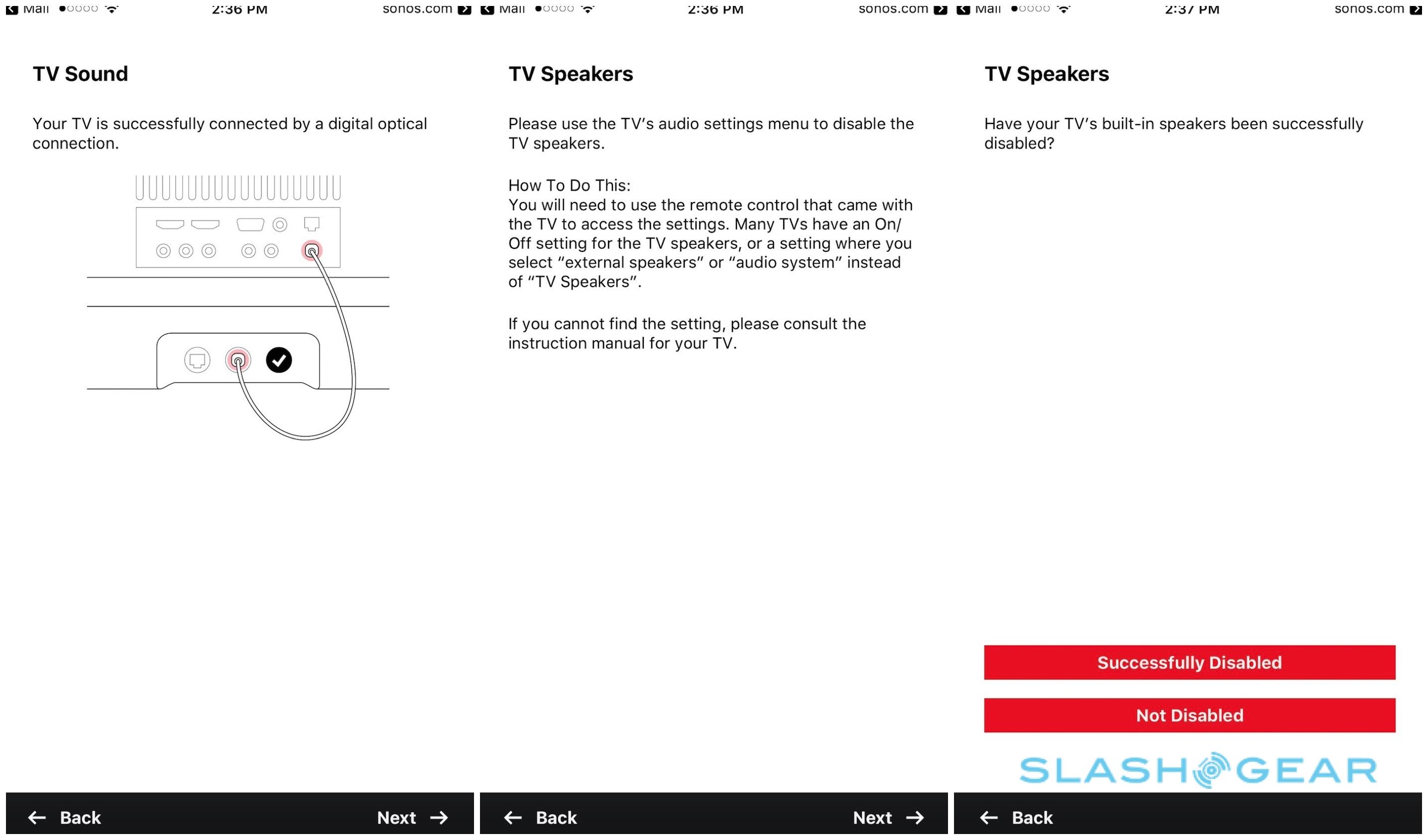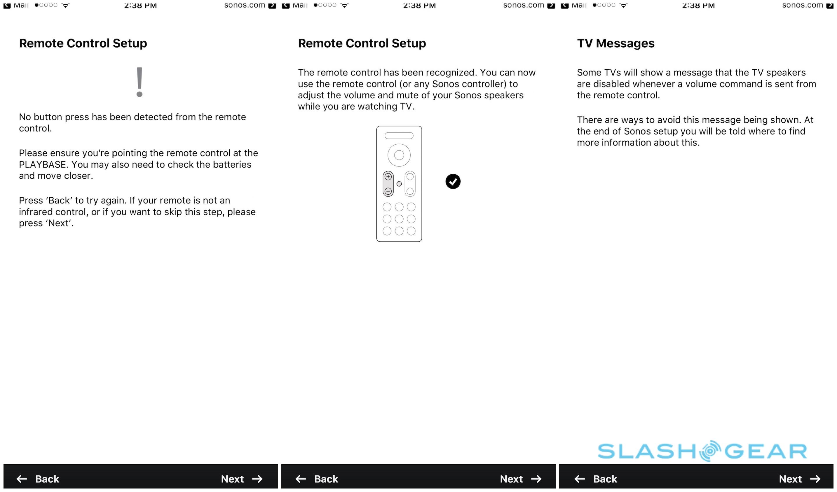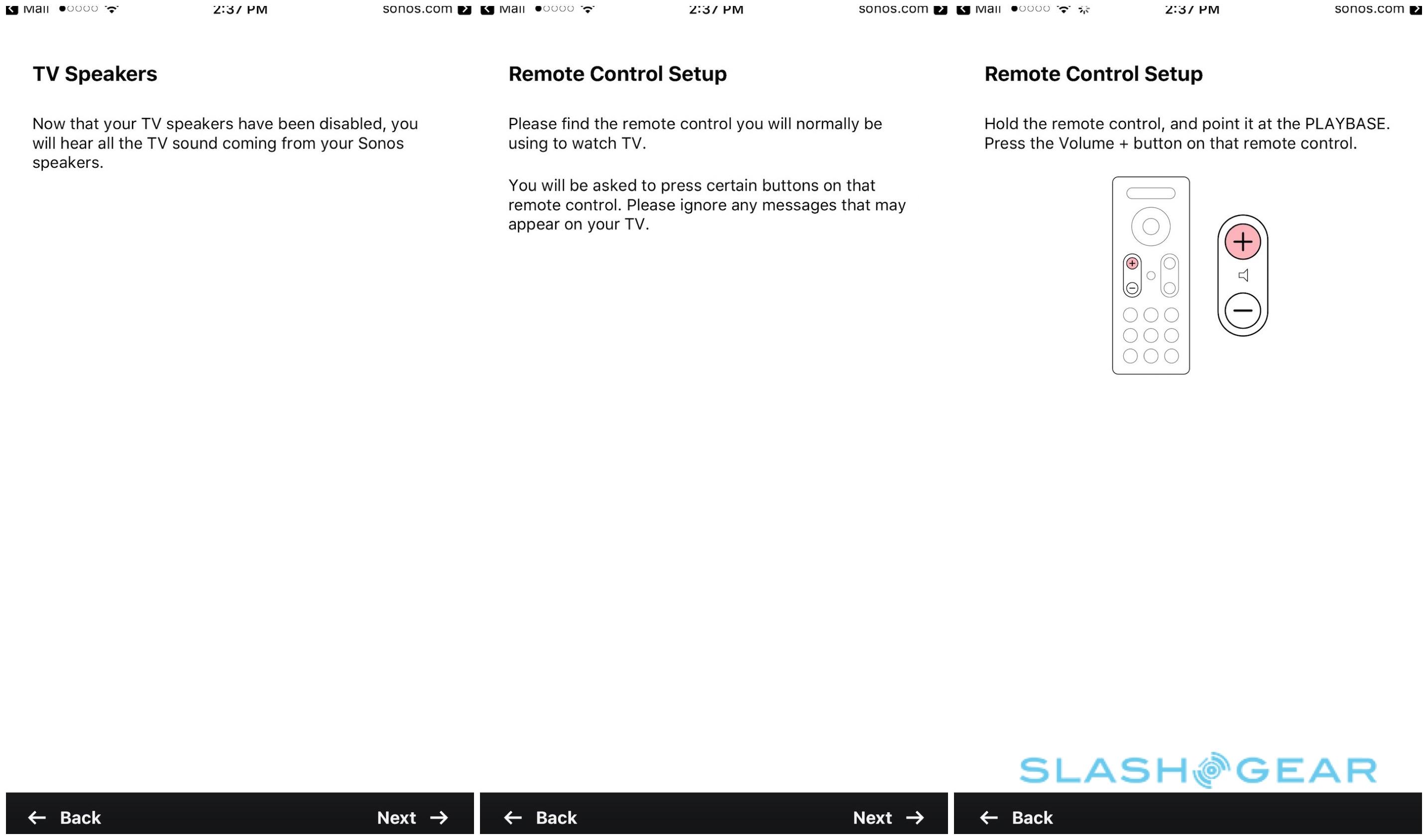 The app then runs through downloading the latest firmware and walking you through tweaking your TV settings so that audio comes through the PLAYBASE rather than the built-in speakers. For me, that meant heading into the audio menu and choosing the optical digital output rather than the speakers; the app recognized that, and moved onto learning the TV remote's volume commands.