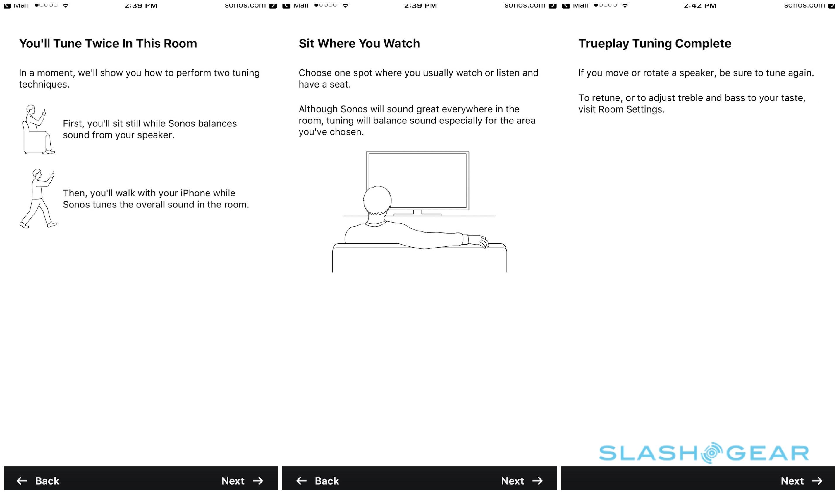 Launched in 2015, Trueplay basically uses your iPhone or iPad as a calibration microphone. First, you sit in your typical TV-watching position with the phone held at head-height, as a series of booming tones are played. Then, you walk slowly around the room, waving the phone up and down as more tones sound. After a few seconds' consideration, the PLAYBASE adjusts its own EQ settings to take into account reflective surfaces, walls that may be nearer on one side than the other, and other placement compromises.