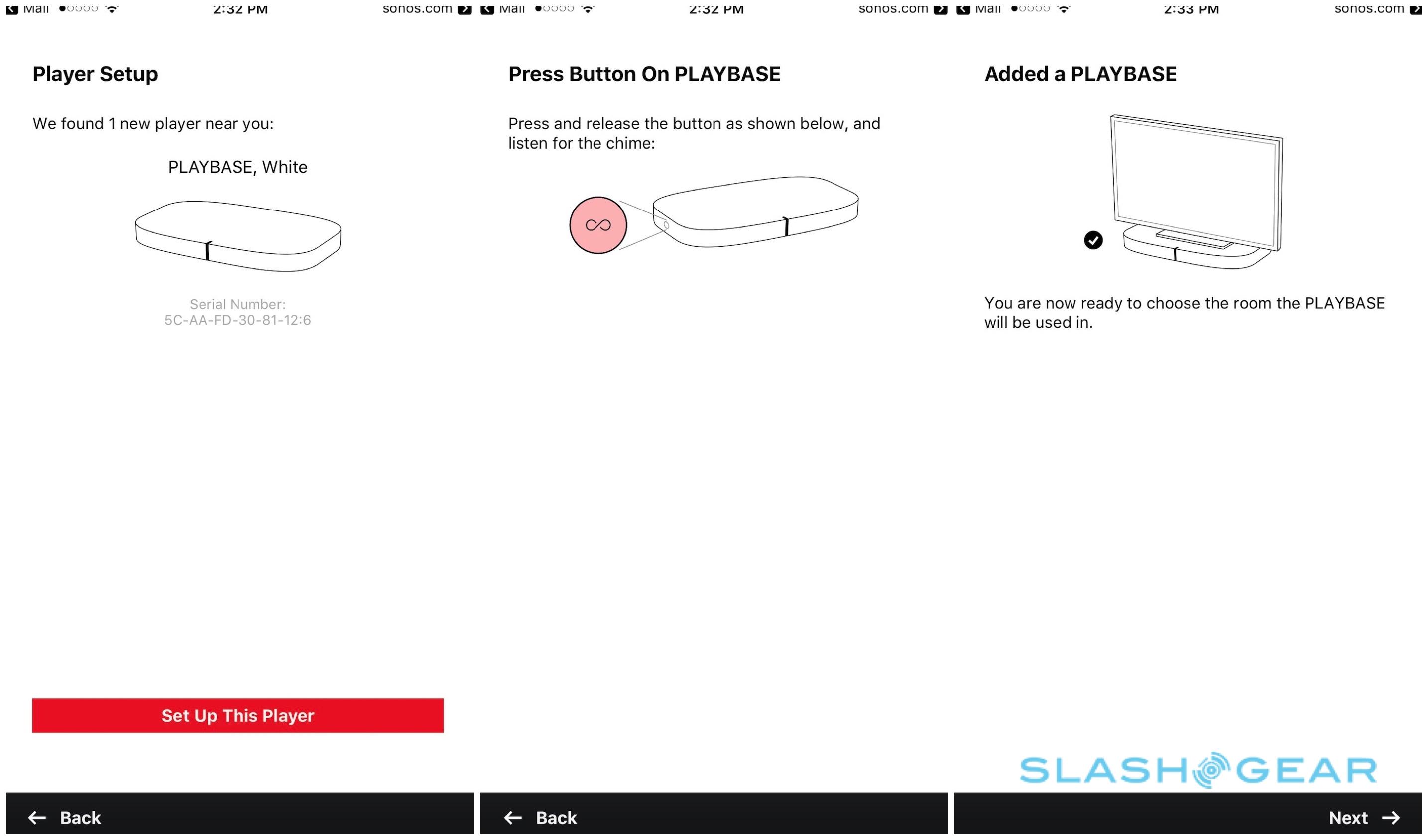 Setup is, as per the Sonos norm, straightforward. With only power, ethernet, and an optical digital audio input on the back of the PLAYBASE, there's not much to plug in: if you're connecting it to a wireless network, you could be done with just two cords. After that, it's a case of finding the speaker with the Sonos app and pressing the pairing button on the side to confirm it.