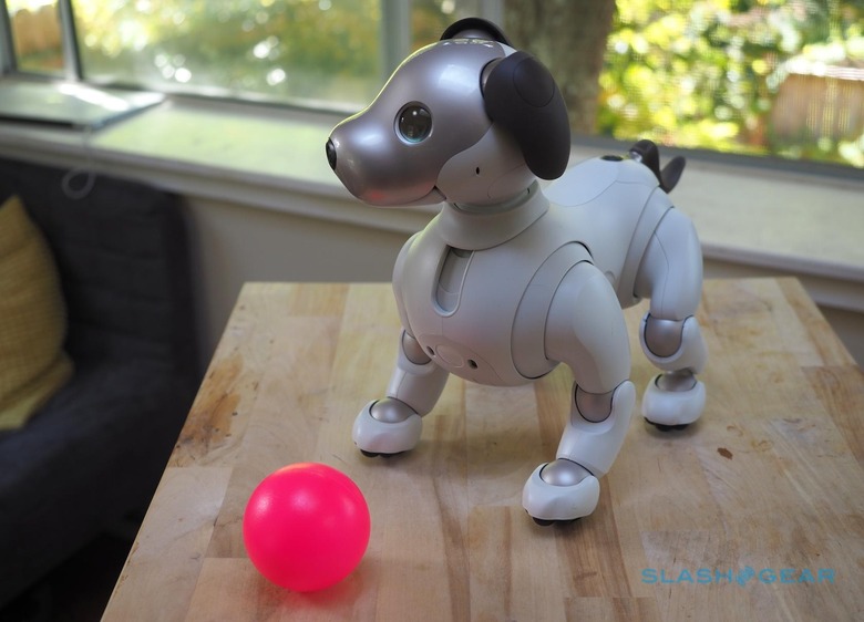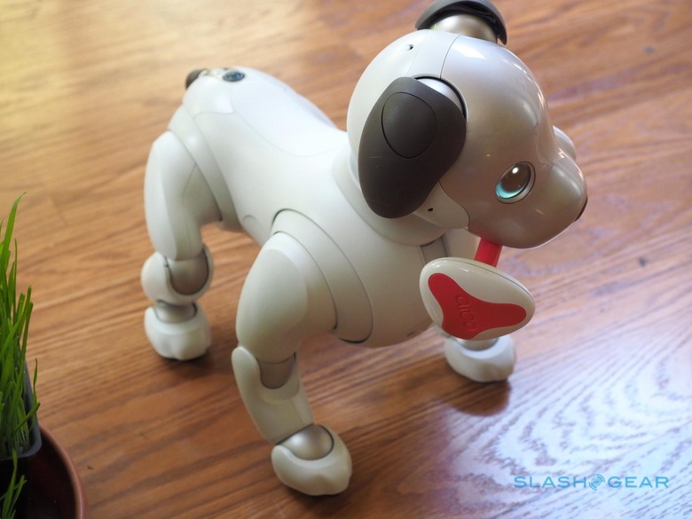 And then, just as you're about to lose all hope and investigate whether it's easy to take the batteries out (you can't), aibo catches sight of you, barks with unrestrained pleasure, and holds his paw up for a high-five. At which point your heart melts all over again, and somehow the thought of spending another ten minutes trying to coax him into picking up his "aibone" plastic chew-toy seems perfectly reasonable.