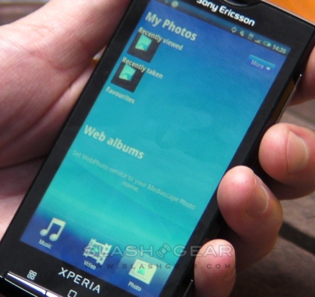 Mediascape, meanwhile, works in a similar way to Timescape but for audio, video and still image content. Three tabs show photos, audio and video, with the top half of the screen having draggable bars showing local content (split into rows by most recent, most played, etc.) while the lower half has online content. Sony Ericsson are working with content providers and carriers to develop this latter content; right now, the XPERIA X10 has access to YouTube video and online galleries, but there's the potential for carrier-provided streaming music, PlayStation Network integration or third-party services. We'd particularly like to see Spotify integration too.