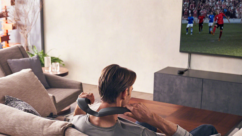 Sony has revealed a new product in its wearable speaker lineup called the SRS-NS7. The device is a wireless neckband speaker that works with the WLA-NS7 wireless transmitter. The wearable speaker is designed to provide an immersive home theater experience providing a new way for fans of sports, TV, and movies to hear the sound that goes along with the action on the screen.