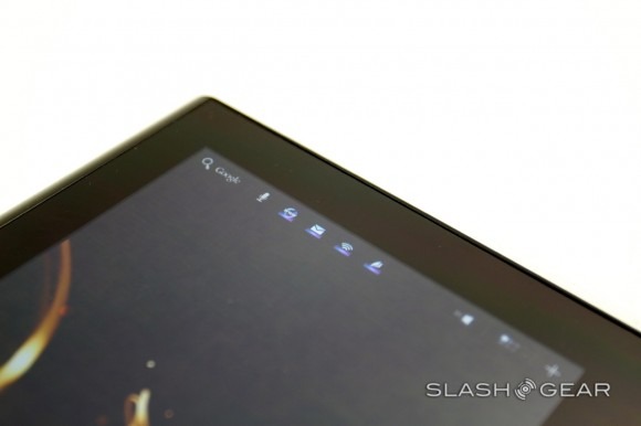 In landscape orientation, meanwhile, the Tablet S' profile angles it on the table, mimicking the slight elevation many cases offer for easier typing. Sony says it helps avoid lighting reflections, too, though we still found ourselves shuffling around the glossy tablet frequently. A matte screen may not lead to the same eye-popping colors as a gloss-finish one, but it's still a sacrifice we'd be happy to make.