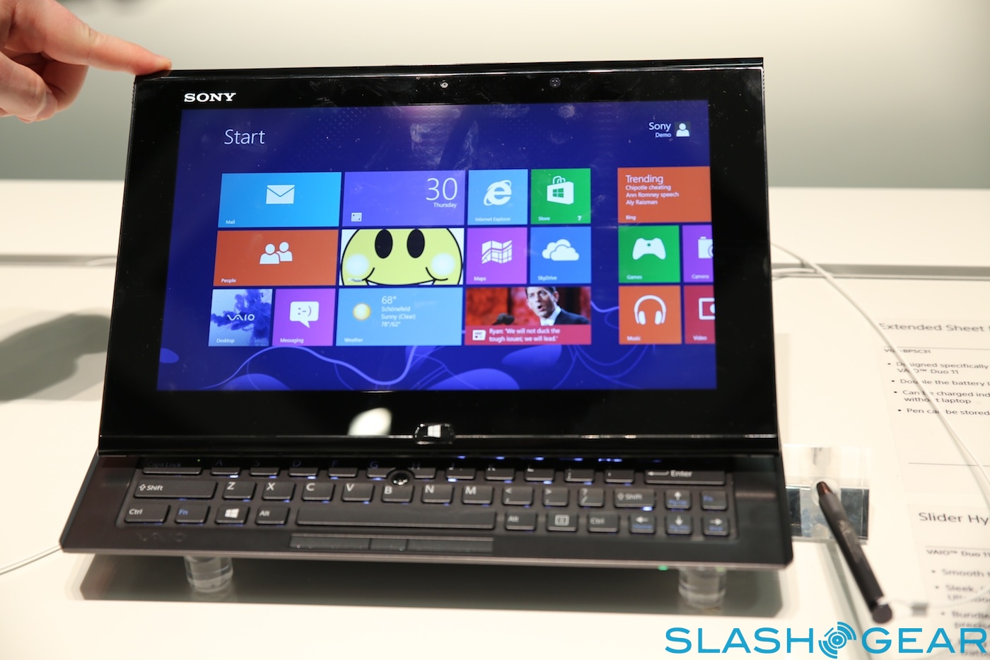 Sony likes to do things differently, and the VAIO Duo 11 is its unusual entrant to the Windows 8 tablet market. Billed as a "hybrid sliding PC" the Duo 11 looks, at first glance, like a chunky tablet, but pull up just above the front-facing webcam and the touchscreen slides back and up to reveal a full QWERTY keyboard. It's an approach we've seen before, from the ASUS Eee Pad Slider, but here running Microsoft's full Windows platform and with a digital stylus for handwriting and sketching.