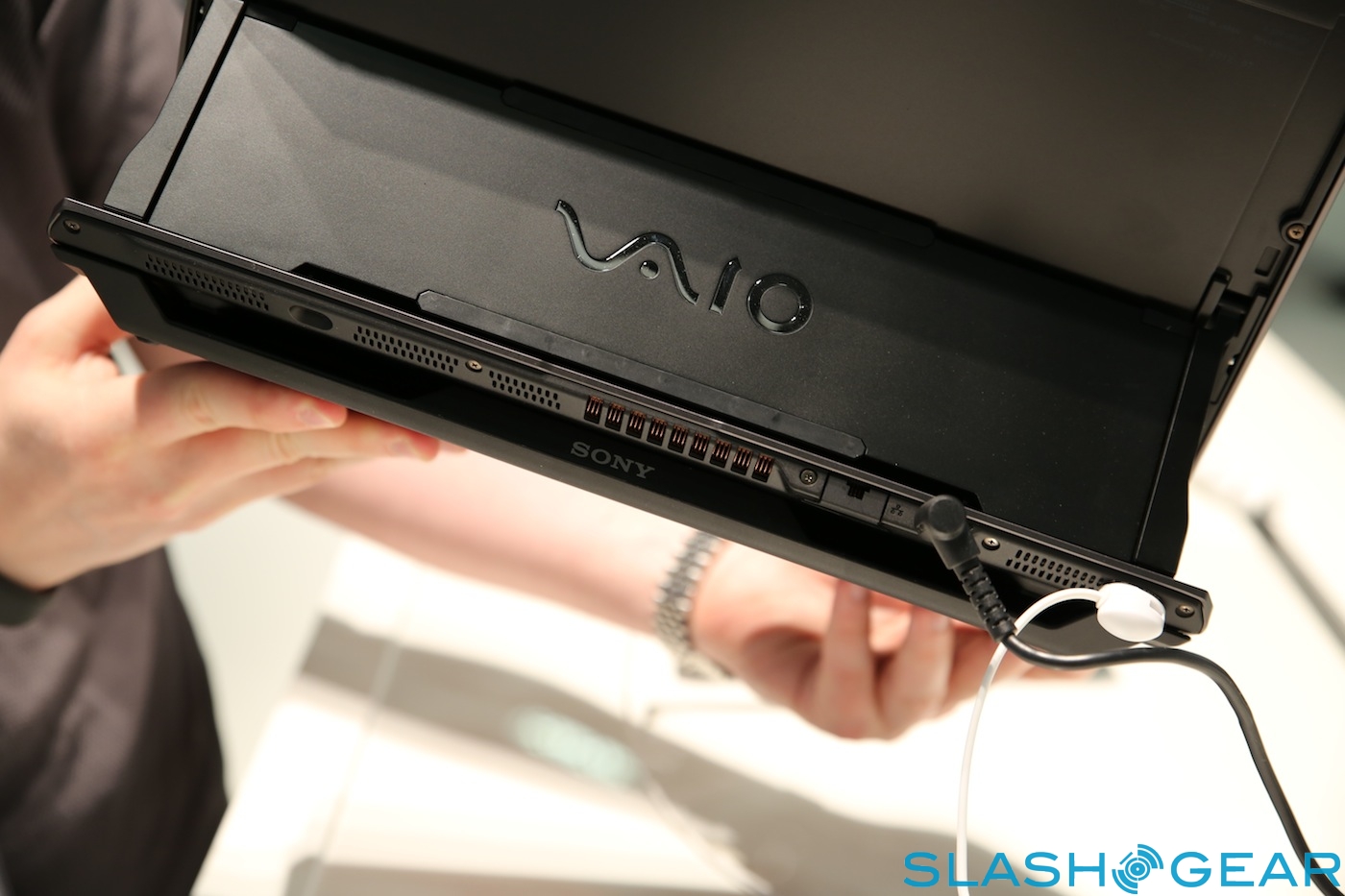 VAIO notebooks generally look the part, especially the more expensive ones, and the Duo 11 follows in those footsteps with an angular black casing that's a nice diversion from the usual round-cornered fare. The glossy plastic is a fingerprint magnet, of course, and Sony's non-final hardware showed some flex when you pull the screen open, but once upright and in place – in a single, non-adjustable angle – it stuck fast no matter how roughly we jabbed at it.