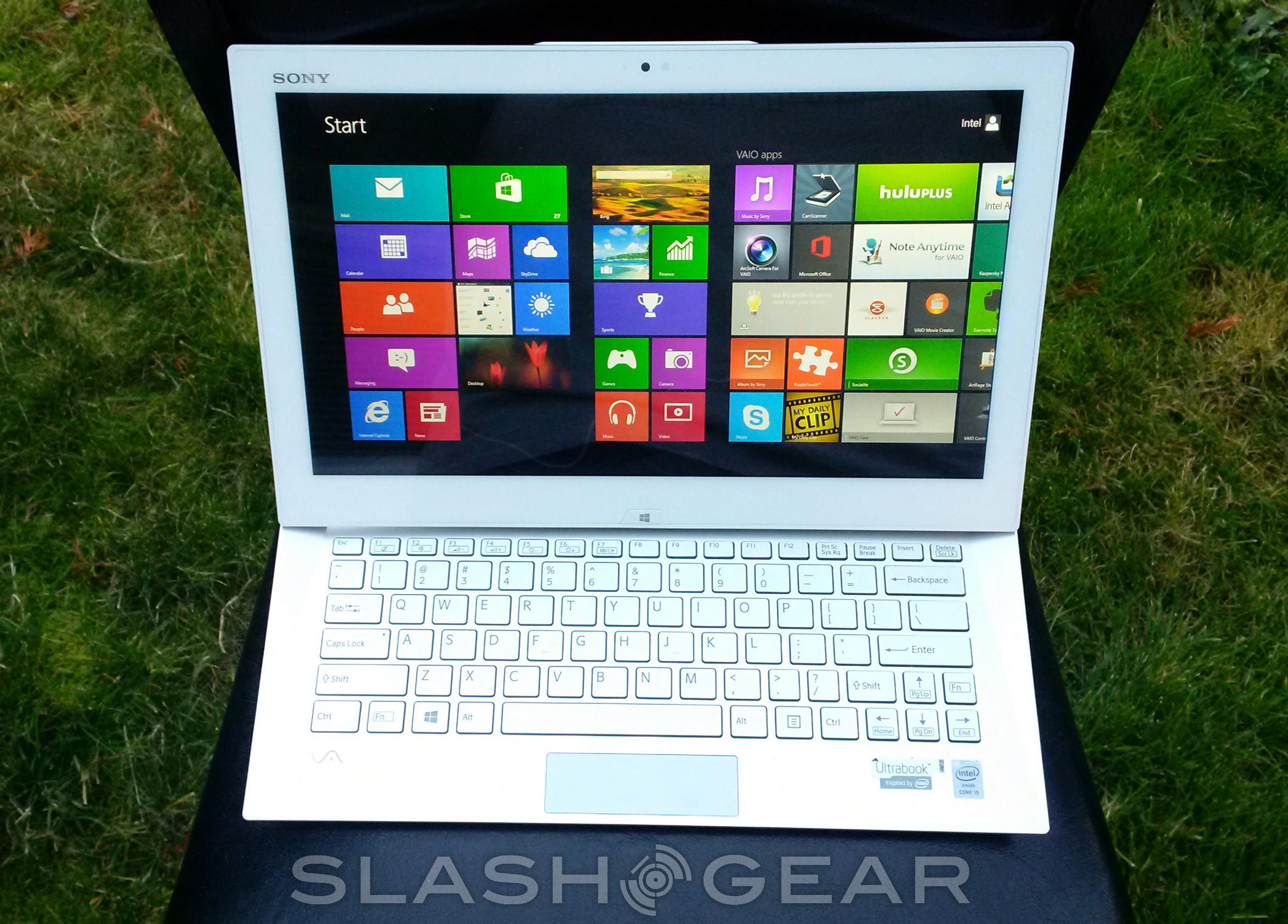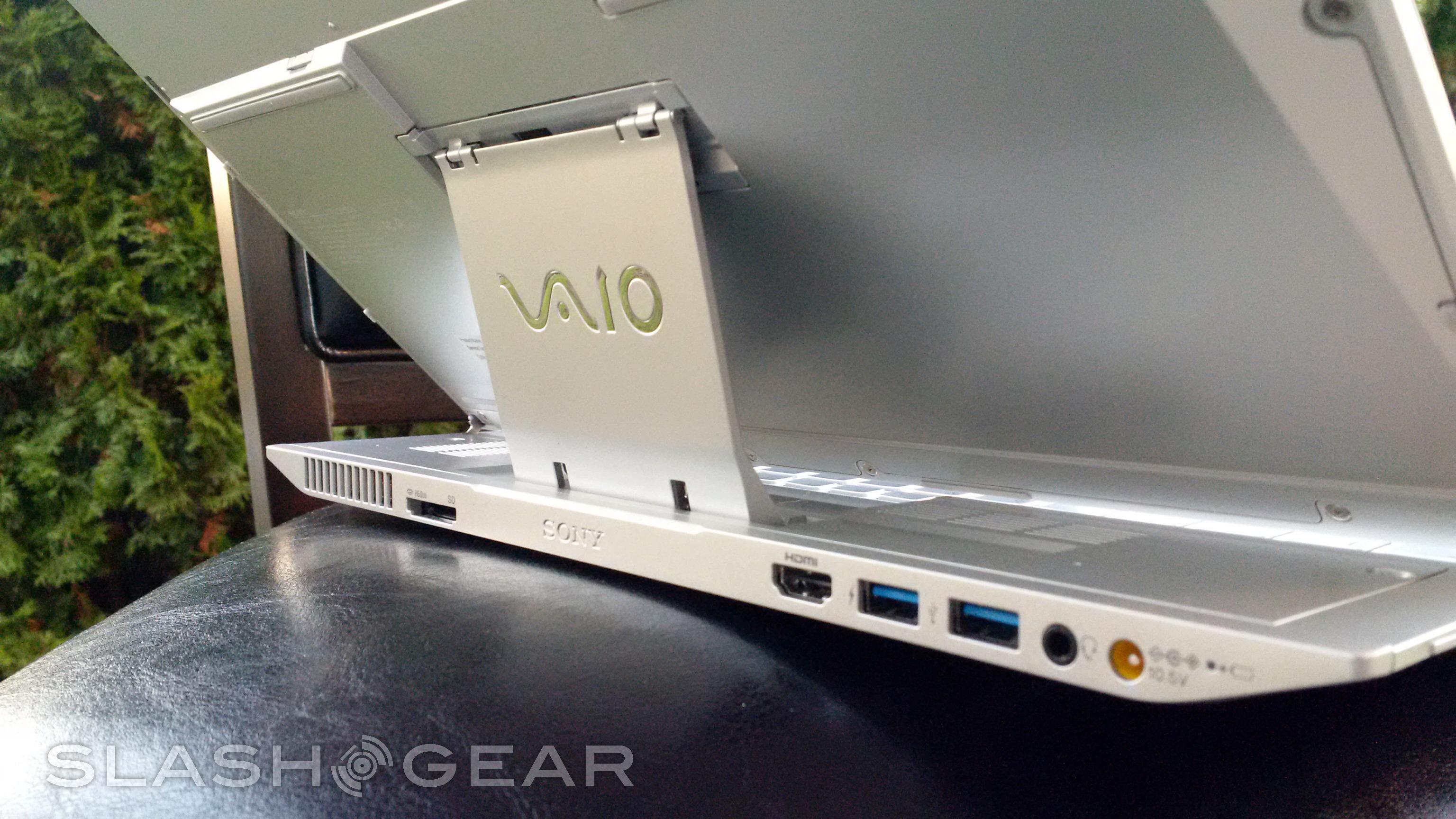Because of the way the hinge is attached to the back of the display, you can manually alter the display's angle when it is between slate and laptop mode, but when you release it, the panel will either finish folding down into a tablet or popping up into a laptop — meaning, essentially, that there's no escaping the fixed-angle design of the device, which proves as limiting with this model as it does on previous VAIO Duo offerings.