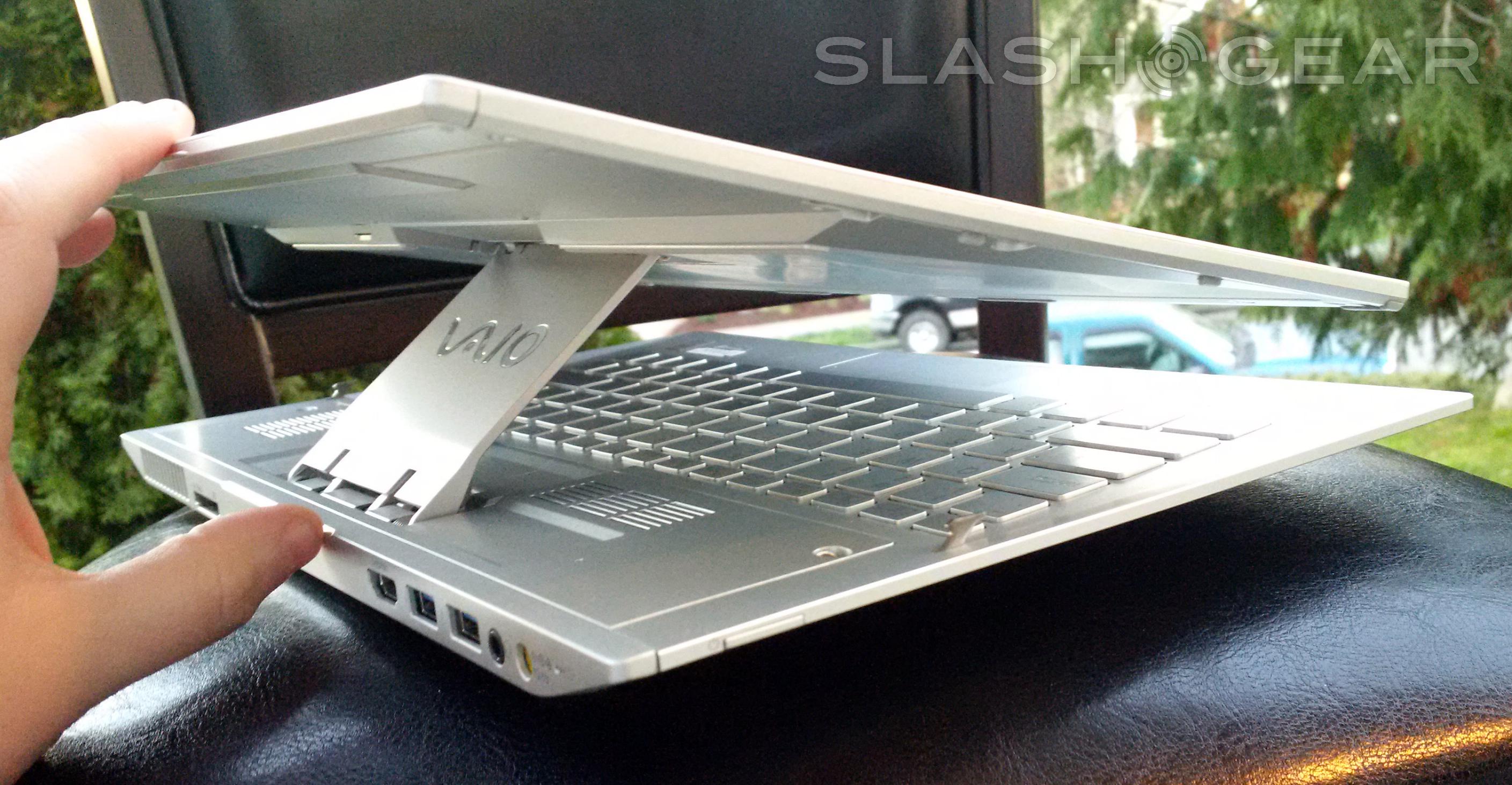 The display is somewhat locked in place by a couple of metal hooks positioned above the keyboard that catch into slots on the bottom corners of the screen. In a perfect world, these hooks would have been either positioned farther back or would have been constructed in a way that is user-adjustable, something that seems entirely possible with the hinge Sony has developed. Alas, they are fixed in place, and as such you'll have to adjust your chair height if the angle doesn't work well for you.