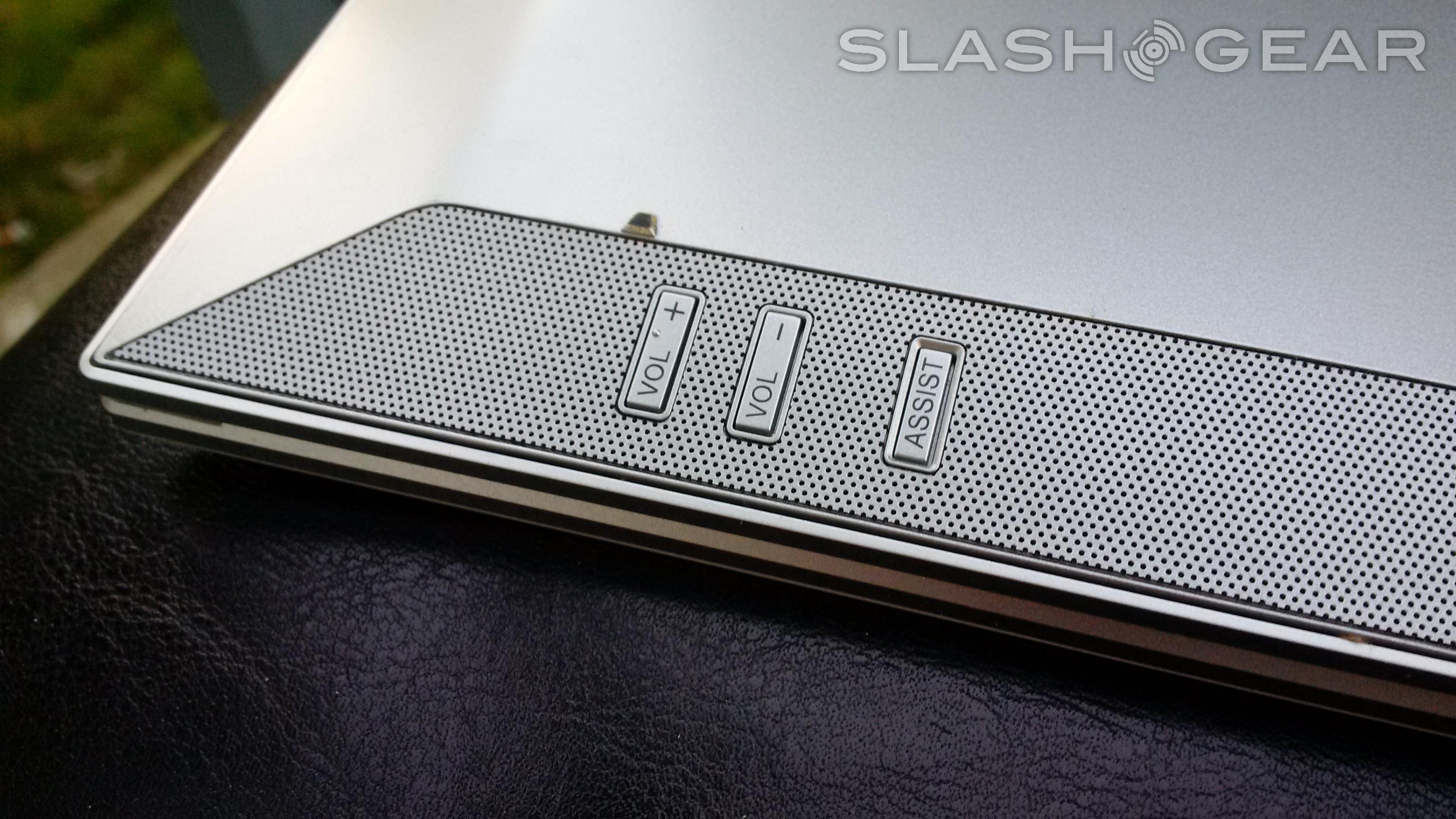 Things get awkward when it comes to the volume and assist buttons, however. Rather than placing rockers on the ample empty space on either side edge of the laptop, Sony elected to position these buttons within the speaker grille along the underside of the bottom edge. They are very shallow keys, too, and as such are nearly impossible to find by touch alone. Even when you do manage to find them, they're so shallow that you might have to stop what you're doing to concentrate on the task of volume adjustment. Overall, it's a strange design choice and placement.