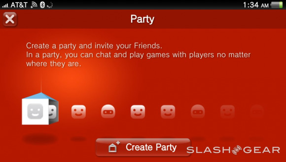 In order to sell a PS Vita to every person on earth, Sony has created a set of apps that'll encourage you to make your friends pick up a unit. One of these apps is Party – in it you've got controls that allow you to speak to and engage with your "Party" of friends that have connected to you through this app. Like the rest of the friend-connected apps, this app works through the PlayStation Network and has an ultra-simple interface which allows you to set up or join a party then speak with your friends and join the games they are playing.