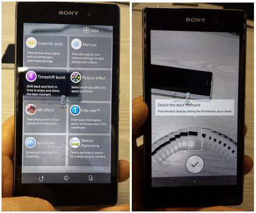There's also a series of effects including Superior Auto – a favorite of reviewers of the Xperia Z, and Social Live. With Social Live you're able to broadcast the photos you're taking to a network that'll allow cross-downloading between devices on the same network. You'll be working with Timeshift Burst as well, this allowing to you choose the best photo of a large series of snaps taken in quick succession.