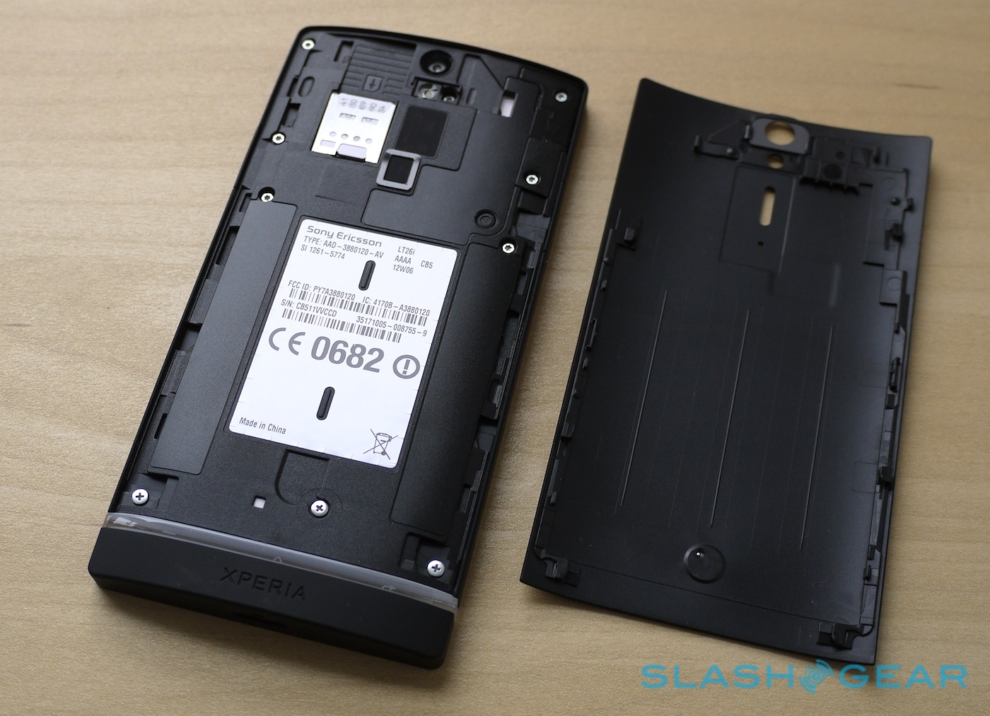 Unfortunately, once you actually get the cover off, there's no much to see. The Xperia S' 1,750 mAh battery is non-user-accessible, and there's no microSD card slot, only 32GB of data storage and up to 1.5GB of app storage. In fact, all you reveal is the microSIM slot, and we're not sure why Sony didn't just add another, smaller notch to drop that in and do away with the removable back panel altogether.