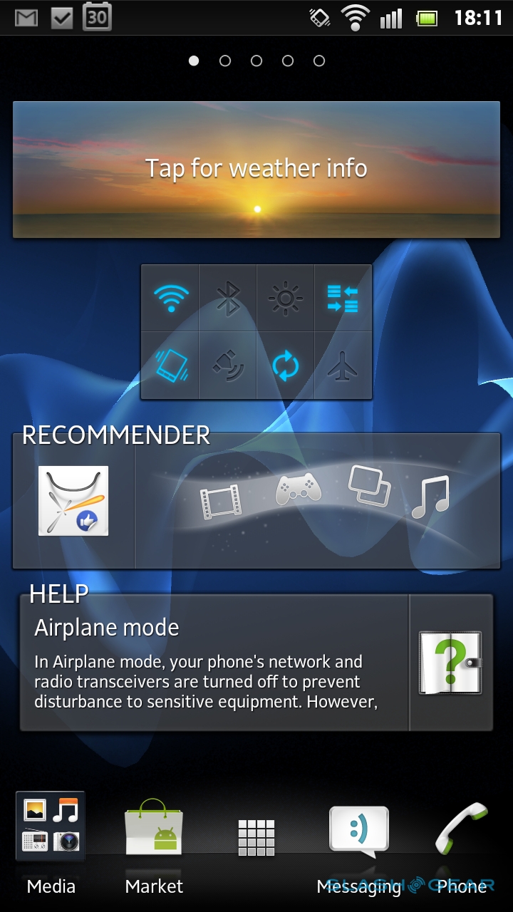 The UI itself is clean and reasonably intuitive, though Sony does clutter up most of the five homescreen panes with widgets from the start. The lockscreen gets basic notifications, though no HTC Sense-style shortcuts. A pinch-zoom gesture shows a floating cloud of all those widgets rather than the more traditional preview thumbnails of the panes themselves, and Sony has built in a useful screenshot tool, with an option in the power menu accessed by holding down the power/lock button.