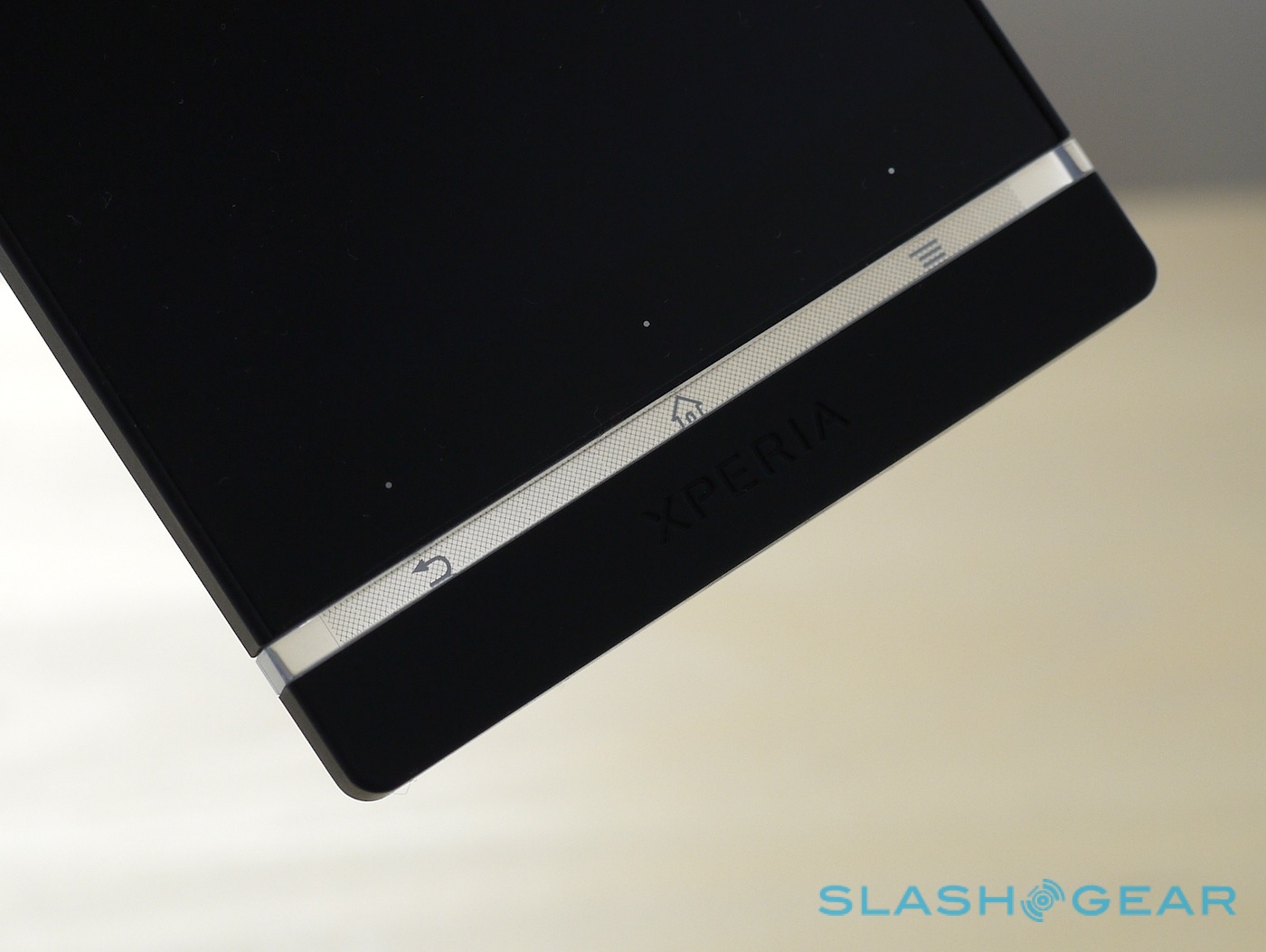 It's an eye-catching design tweak, and there's a moment of real surprise when you realize you can see your hand all the way through. Sandwiched inside are the illuminated logos for back, home and menu, though the touch-sensitive buttons themselves are actually just above, highlighted with tiny dots in the strip beneath the display. Sometimes we'd find ourselves aiming for the transparent section and having to double-stab to make sure we actually got the button we were aiming for.