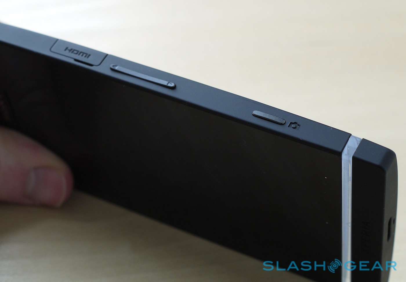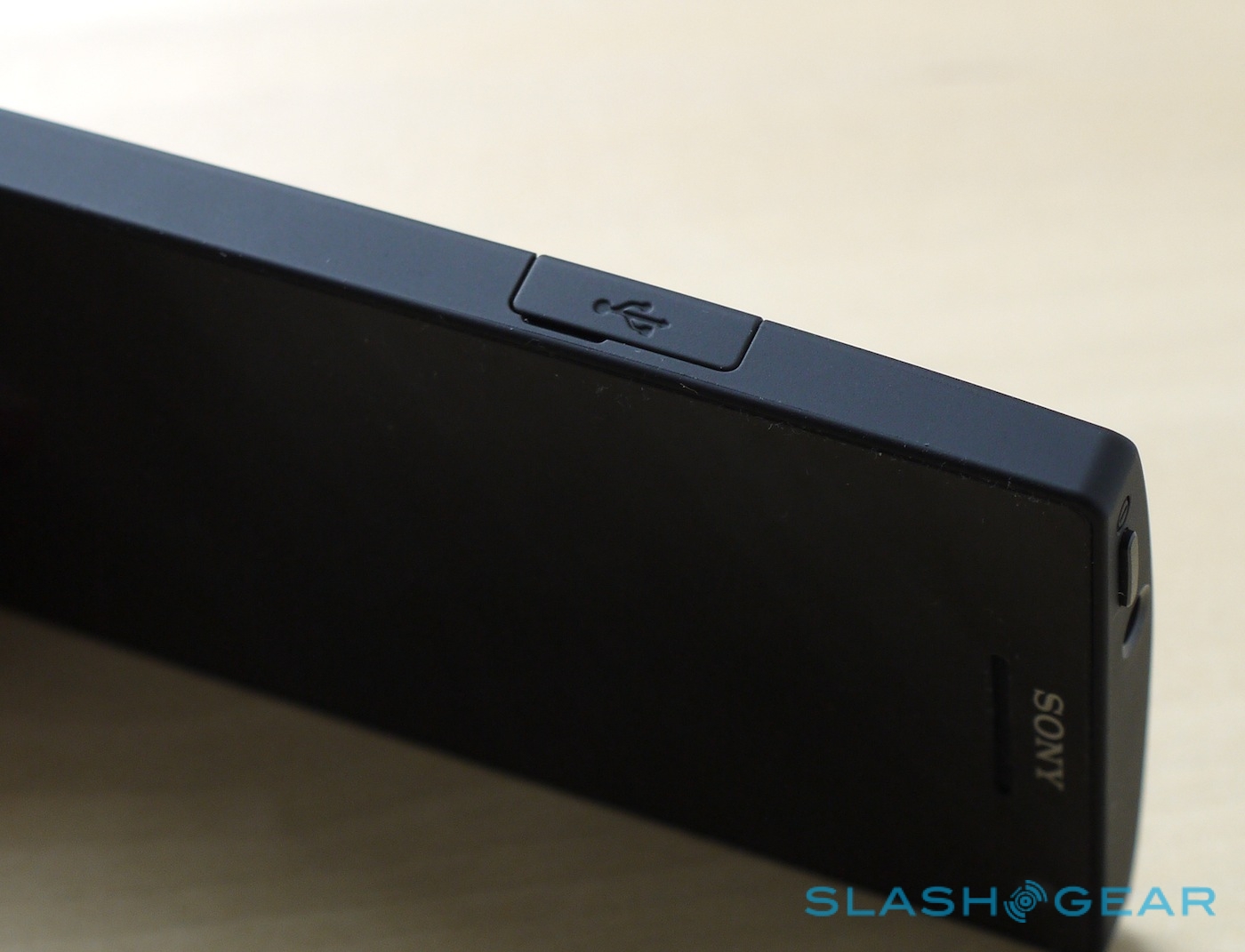 The rest of the hardware is a mixture of the eminently sensible and the ridiculous. You get a dedicated camera shortcut key along with the volume rocker on the right edge, together with the power/lock button and a neatly bevelled headphone jack on the top, together with separate ports for microUSB and micro HDMI. Unfortunately Sony insists on putting fiddling covers on top of both of them. On the back there's the stacked row of the 12.1-megapixel camera lens, an LED flash, speaker and microphone; the whole cover clicks up to remove.