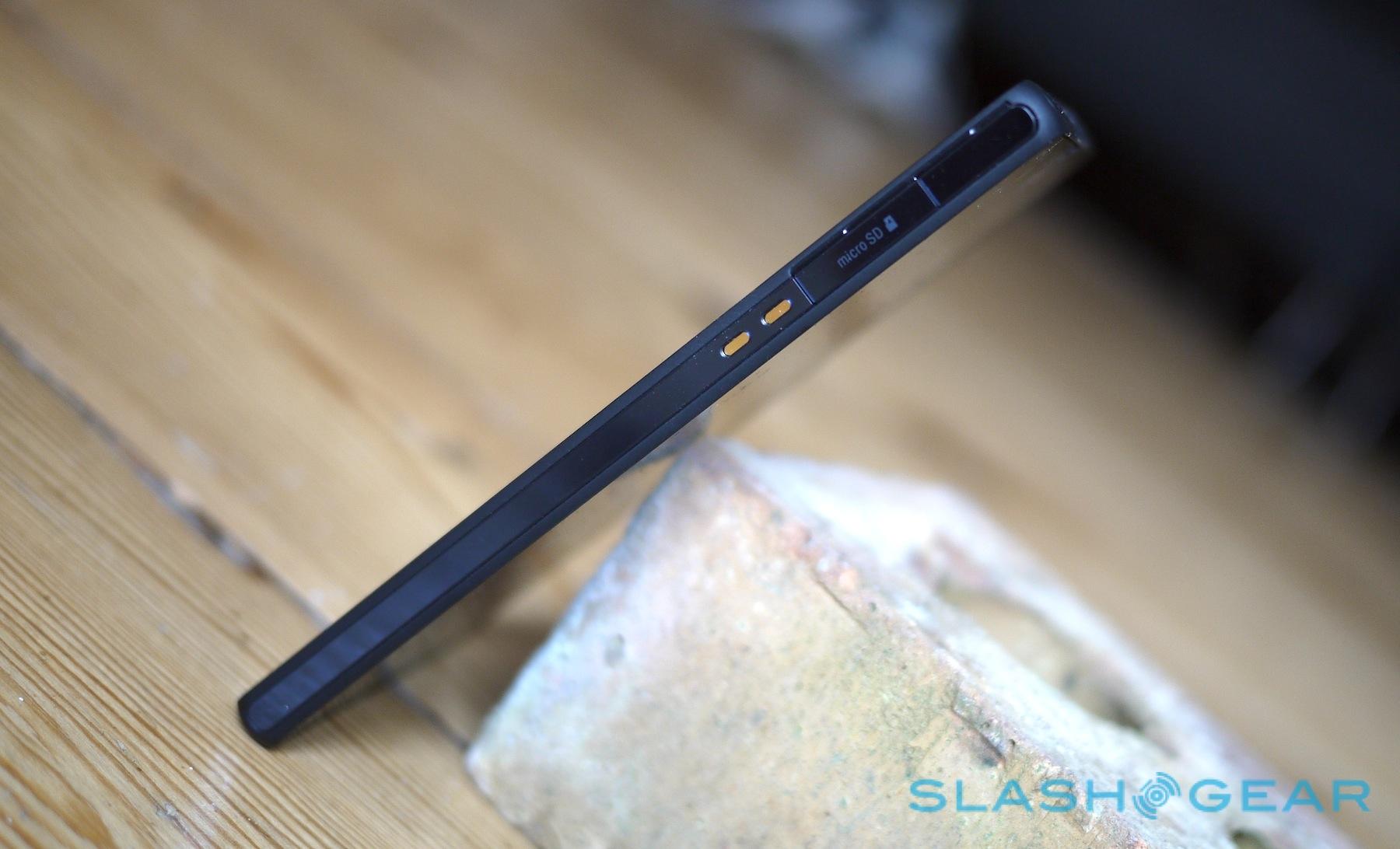 There's no shortage of connectivity inside the new Sony. Our UK handset supports hexaband LTE (1/3/5/7/8/20) and triband HSPA, along with quadband GSM/EDGE. Then there's WiFi a/b/g/n, Bluetooth 4.0, aGPS/GLONASS, NFC, WiFi Miracast, a microUSB 2.0 port with MHL HDMI support, and a microSD card slot (supporting up to 32GB cards). Onboard storage is 16GB, while the 1.5GHz Qualcomm S4 Pro quadcore processor is paired with 2GB of RAM. On the back there's a 13-megapixel camera with Sony's own Exmor RS branding, while a 2-megapixel Exmor R camera is above the display for video calls and vanity shots.
