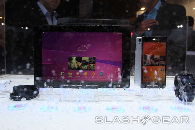 ABOVE: The Sony Xperia Z2 Tablet is being released with a host of accessories right out of the box. This includes a keyboard case, magnetic charging dock, speaker dock, and more.