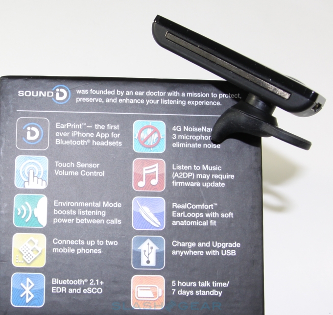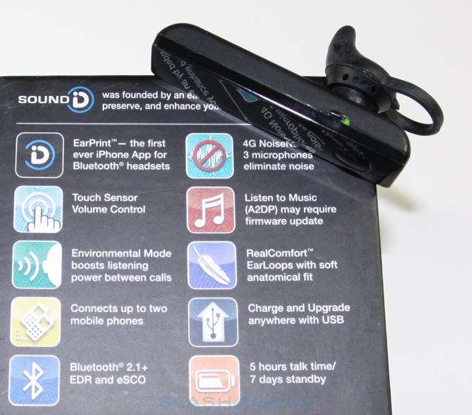 The Sound ID 510 headset itself is pretty generic in appearance. Around 2-inches long, it's finished in gloss black plastic and has a detachable ear-hook. We found the company's "Real Comfort" earbuds felt secure enough to hold the 510 in place without necessarily requiring the ear-hook, while still being soft enough that it was comfortable for longer periods. It even comes with a handsome carrying case. Physical controls include a multifunction button (with an LED indicator) and a power switch on the side. Volume control, meanwhile, is handled by sliding your finger along the front of the headset, a method which seems reasonable responsive but is perhaps a little less intuitive than a couple of hardware buttons.