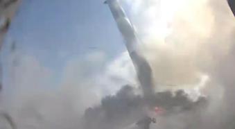 For now, all we have are these photos tweeted from the crash site, plus a short video on Vine with the Falcon 9 rocket landing on the "Just Read the Instructions" barge. Previous footage is from a January landing when the rocket hit the drone barge at an odd angle and exploded upon impact. According to Musk, "All we have right now is low frame rate video (basically pictures). Normal video will be posted when ship returns to port in a few days."