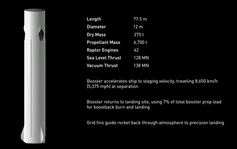 It will be able to take off and land, just like a proper science fiction spaceship. Each vehicle will utilize 42 Raptor engines.