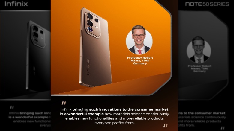 As the ultimate showcase of engineering acumen, Infinix created special Racing Edition variants in partnership with a prestigious automotive design team that specializes in high-performance vehicles. These exquisite limited edition models of the Infinix NOTE 50 Pro combine a sleek metallic frame with a zircon sand back cover, offering surface grip with a stunning gradient finish. The Note 50 Series is also available in titanium grey and enchanted purple. "The color range is spectacular, which stands out next to the otherwise understating noble design," says Professor Maass.