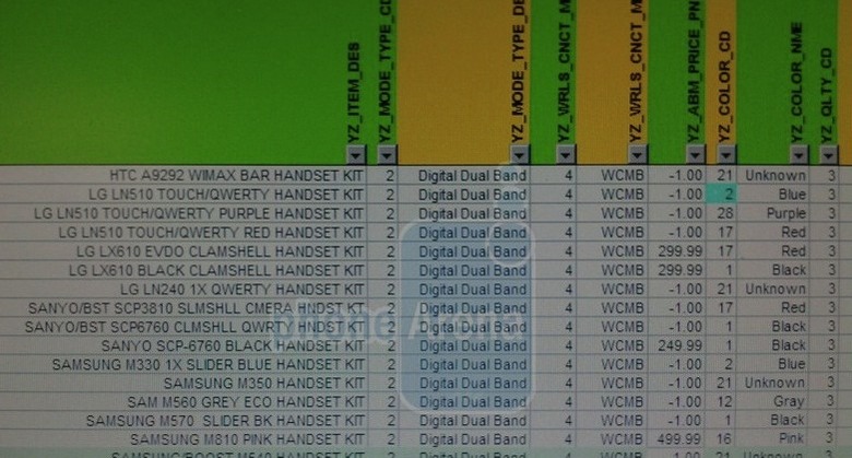 You'd think CES 2010 would sate even the most gluttonous of gadget-hounds, but apparently there's still room for a leak or two. Sprint's 2010 device line-up has apparently been leaked, with phoneArena's tipster providing them with details of handsets ranging from an HTC WiMAX candybar (codenamed A9292) through the Palm C40 (a different device from the existing Pre and Pixi) and the BlackBerry Tour 2 9650 (the sequel to the current Tour).