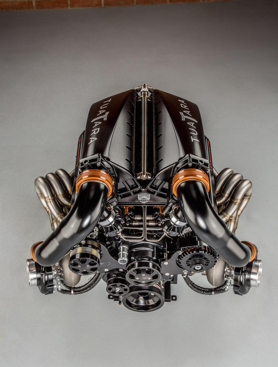 Under the hood the Tuatara features a 5.9-liter twin-turbo V8 engine that was co-developed with Nelson Racing Engines. Along with a redline of 8,800 rpm, the engine has two power ratings: 1,350 horsepower when running on 91 octane gasoline, and a whopping 1,750 horsepower when using E85 ethanol. This is all paired with a seven-speed automated sequential manual transmission, with a "robotic shift system" powering the rear wheels.