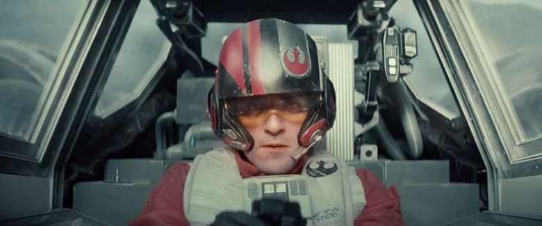 The pilot you see here is Oscar Isaac (see above John Boyega link for more information on this actor), an actor who earlier this year was given an "expanded role" in the film after Harrison Ford's leg injury. He's flying a next-generation X-Wing.