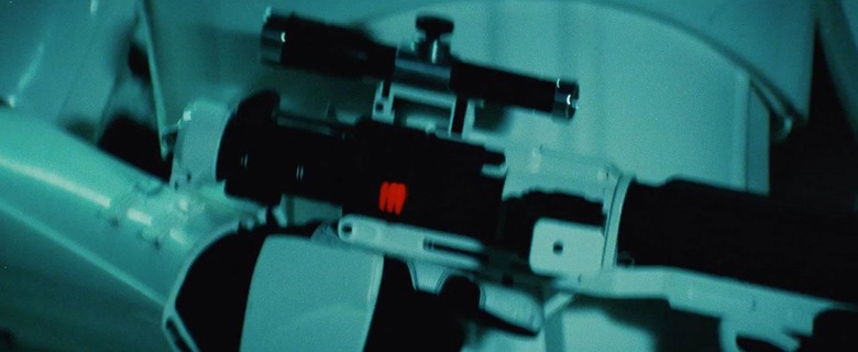 The next scene here is a bit blurry – but it shows an advanced Blaster Rifle. This is similar to the rifles you see Stormtroopers carrying throughout the series – just a bit bigger than a Blaster Pistol, but not quite an extended sniper-class rifle. Made for mid-range assaults.