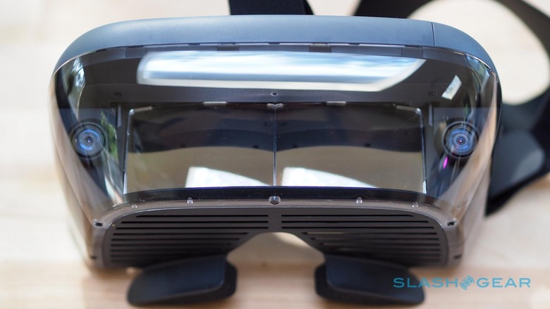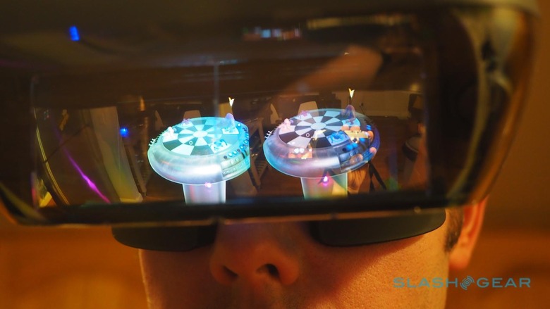 Instead, it's orientated horizontally, with the display facing down. Two semi-mirrored lenses are in front of your eyes, so that you see not only the view ahead but a reflection of what's on the phone's screen. The result is a HoloLens-like augmented reality experience, but without expensive transparent displays and an impressive 33-degree field of view vertically and 60-degrees horizontally.
