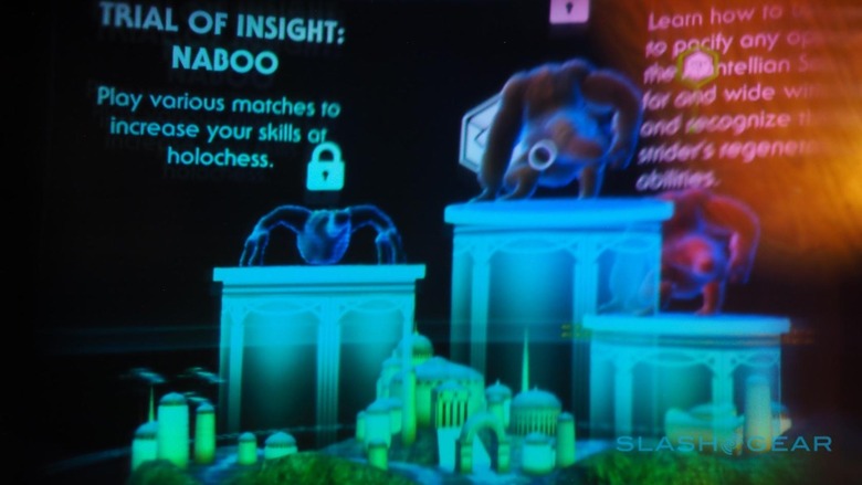 Unfortunately, actually sharing that experience is difficult. Currently, Jedi Challenges is a one-player affair, though Disney tells me that it's working on multiplayer – then, hopefully, you and a friend will be able to battle with lightsabers or take each other on in Holochess, rather than just fighting against virtual enemies. I'd have liked to have seen some sort of screen-sharing option, beaming what the headset-wearer is seeing to a nearby TV so that observers can admire their saber-wielding as well as laugh at them lunging around the room.