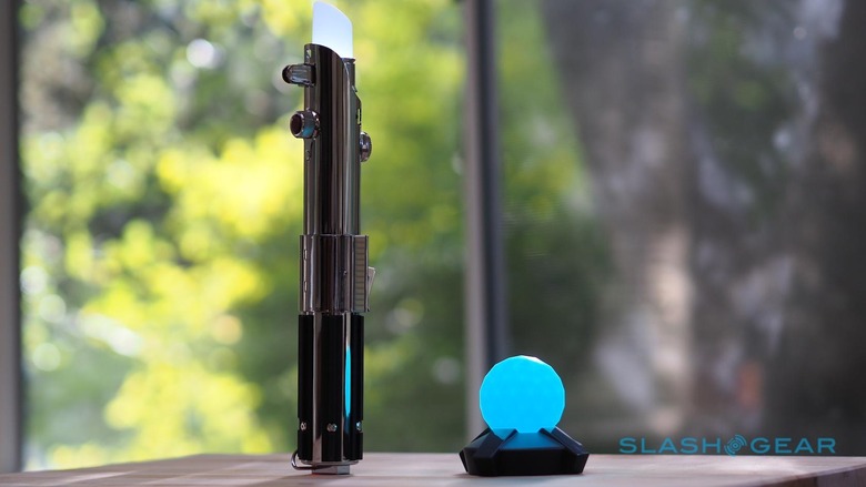 The lightsaber is undoubtedly the star of the show. It's an impressively accurate replica of the iconic weapon used by Anakin, Luke, and Rey in the Star Wars movies, and recharges via microUSB. Honestly, I think its quality could've been the make-it-or-break-it factor of the whole system: had it been plasticky and felt cheap, a lot of the charm would've evaporated when you picked it up. Instead, at over a foot long and more than half a pound in weight, it has a pleasing heft and the metal construction feels like it could actually withstand a battle.