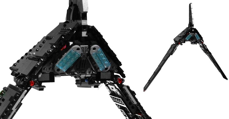 I've put together a number of triangular space vehicles from LEGO, including the massive elder shuttle (Imperial Shuttle 10212) and the more recently-released T-16 Skyhopper (75081) (now as retired as the far larger Imperial Shuttle) – very massive and quite small, respectively. This newest shuttle from Rogue One is right in the middle.