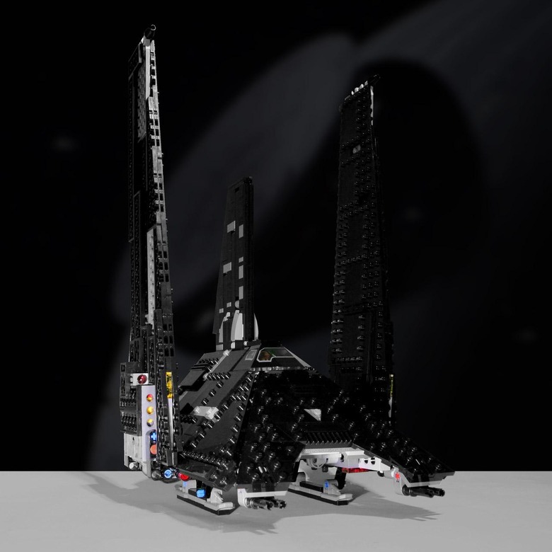 One of several LEGO sets made for the release of Star Wars Rogue One is here – Director Krennic's Shuttle. Behold, the LEGO Empire's award for Best Dressed in pre-Yavin attire goes to none other than Director Krennic. He'll be arriving in his all-black shuttle to emphasize his white outfit – and cape, of course. This vehicle should remind any hardcore Star Wars fan of the Emperor's own shuttle – and several other three-winged beasts made for only the most powerful of Imperial agents.