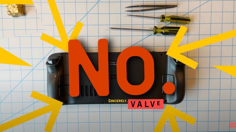 The video you're about to see includes more than a couple of mixed messages. You'll see Valve recommend that you avoid opening your Steam Deck, but ALSO suggesting that you should "stay tuned in the coming months for a source for replacement parts: thumbsticks, SSDs, and possibly more." The first message you'll see in this video is literally "You shouldn't do any of this."
