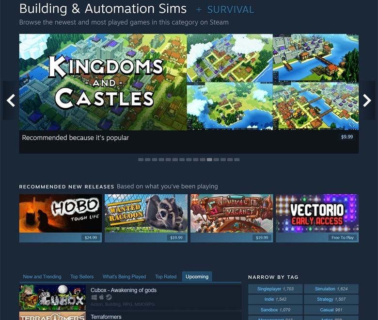 Genres can be quite broad so, unsurprisingly, Steam further categorizes them down to sub-genres. RPGs have, for example, JRPGs and Rogue-likes while Simulation has Building and Dating. These pretty much reflect the tags that are available already in Steam, just with a more visible organizational structure.
