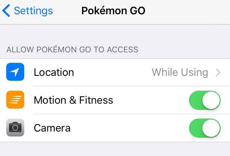 Of note – the Pokemon GO app does not ask for full permission to your phone's hardware. If you open your iPhone's settings, for example, to find what the app has access to, you'll find the following.