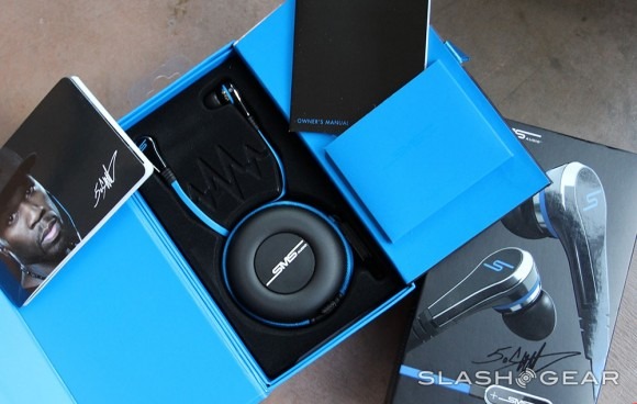 This week we've got our hands on the two-toned plastic earbud entry into the Street by 50 lineup for SMS Audio. These little buds are the most mobile-minded companion to the Bluetooth headphones we reviewed several weeks ago (Sync by 50), and the whole SMS Audio lineup with 50 Cent's name on them appear and sound rather alike. Thusly what we'll do here is let you know the differences between the headphones and the earbuds as well as discussing the sound quality as we did with that set before – get ready for more blue cables, zippers, and logos than you can handle!