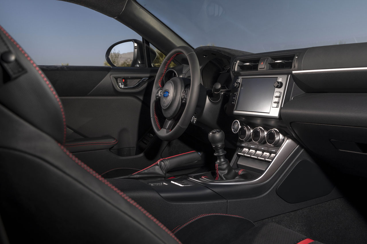 Subaru also added Active Sound Control to enhance the engine sound within the cabin, and driver's knee airbags has been added. The interior has been redesigned to make everything easy to control and access for the driver. The car has a seven-inch customizable digital instrument panel that puts the tachometer front and center along with a digital speedometer. A programmable meter to the left of the tachometer can display amps, coolant temperatures, or lateral-G forces.