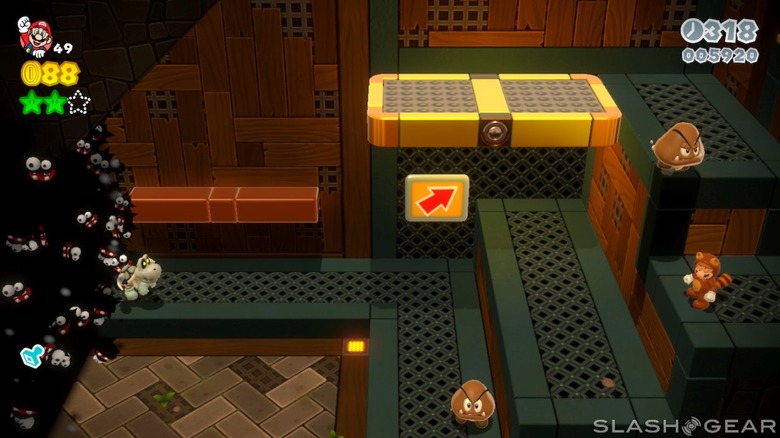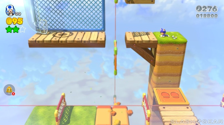 From a level design standpoint, I think Super Mario 3D World is wonderful. The levels are varied, compelling, and boast some of the strongest designs we've seen in any Mario game bar none. Any touchscreen segments that were present in the original game have been replaced with gyro controls, and though those take a little while to get the hang of, eventually they won't be any issue. Gyro segments are few and far between, too, so it's not like you'll have to use motion controls all that often – good news for people who loathe motion controls like me.