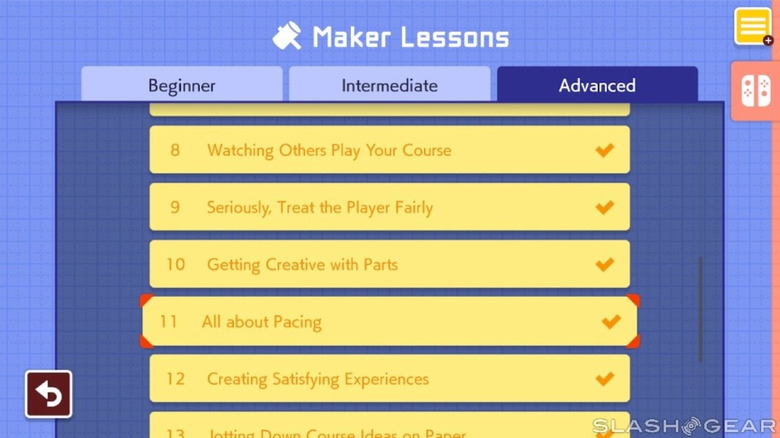 If you're in handheld mode, though, you're forced to use the touchscreen when creating your stages, which emulates the Wii U experience fairly well. However you create your courses, it can be a little intimidating at the outset because you're presented with a lot of options and not much in the way of direction.