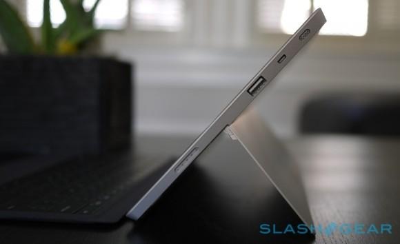 Buttons and ports are minimal, with power and volume keys, a single USB 3.0, microSD card reader, headphone jack, and a video output for a second display, together with the proprietary docking port to which Microsoft's various keyboard covers cling to. We tried the $129.99 Type Cover 2, which has discrete keys that are now backlit for more flexibility; despite the relatively short travel, it's surprisingly useful at bringing typing up to laptop-like speed. $119.99 gets you the Touch Cover 2, which is thinner by virtue of sacrificing physical keys for virtual ones – still backlit – that are printed on.