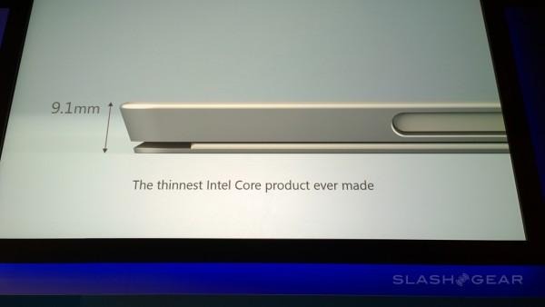 Panay went so far as to put a MacBook Air on one side of a scale, the new Surface Pro 3 on the other end. Guess which one was lighter? Keep in mind there's no keyboard attachment on the Surface Pro 3, of course, but it is lighter (for now) than a comparably sized MacBook Air.
