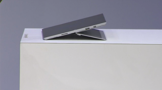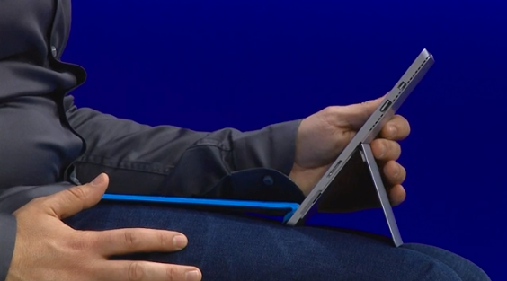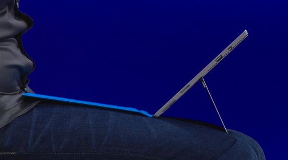 Microsoft is talking up the new friction hinge of its Surface Pro 3 tablet, and how it works with the new Type Cover that has been redesigned for better lap use and more. The Surface Pro 3 can now be adjusted to lie nearly flat, at up to 150-degrees back, which Microsoft's Panos Panay describes as a very "intentful" angle for art and such. There's also a new docking station for the Windows tablet.