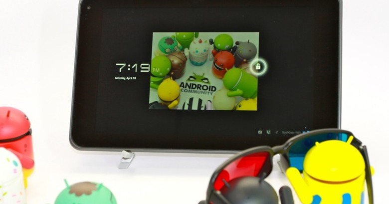 On the front is a 2-megapixel camera for video calls, while a dual 5-megapixel camera array on the back – with a single LED flash – supports 3D photography and video capture. In-between the two lenses there's a flip-out metal kickstand, useful for propping the tablet up for video playback (though generally not at the right angle for standalone 3D recording). We often found ourselves smudging the rear lenses when holding the G-Slate in portrait orientation. Ports include microUSB and HDMI on the bottom edge, as well as contact points for the optional docking station, and a 3.5mm headphone jack on the left edge. Volume controls and a power/standby button are the only physical keys to be found.