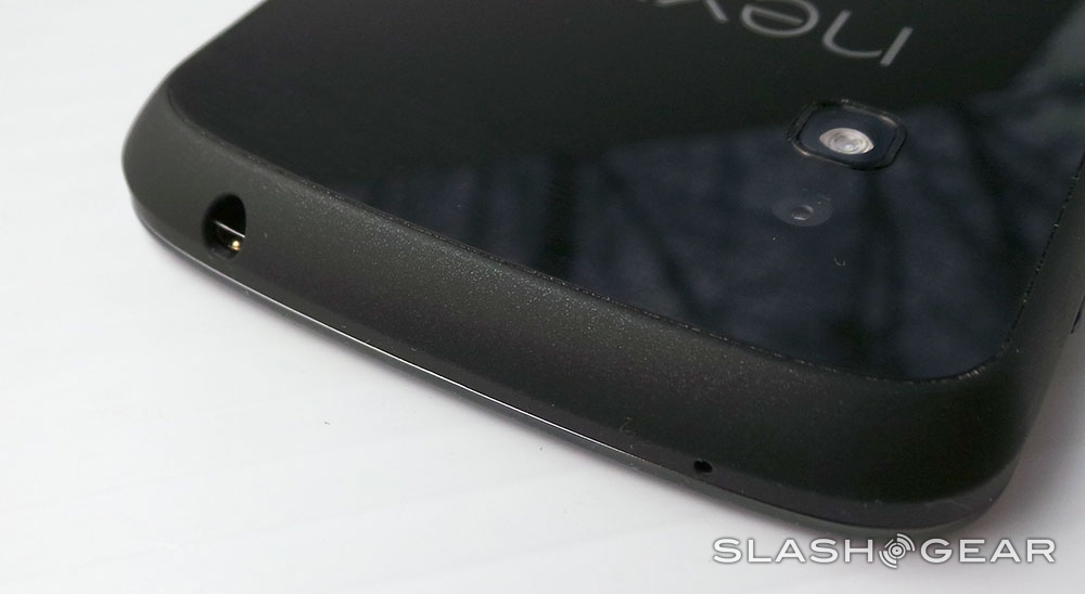 I had major reservations about the LG Nexus 4 after having experienced the strangely slippery hardware of the LG Optimus G (see our full review here). I'm not talking about any sort of slipperiness in an ephemeral sense – I mean the plastic and glass that makes up the bulk of the device is literally slick. As it turns out here with the LG Nexus 4 though, any little bit of grip friendliness lost is more than made up for by the fabulously well-crafted curved edges of the front-facing panel.
