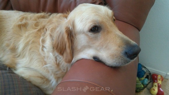 What MMtech Online review would be complete without testing the camera on my dedicated model and young puppy named Bentley so here's one of him taken with the myTouch 4G Slide camera. He usually isn't allowed on the couch and you can tell by the look on his face.