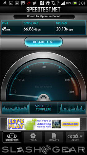 Below: our speed test ran especially quick at the NYC special event for this device and T-Mobile's new collection of 4G LTE announcements.