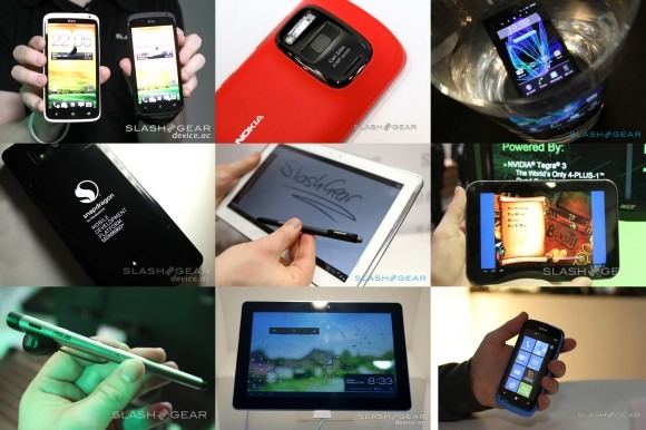 2012: HTC revealed their HTC One series with the HTC One X, S, and V. ASUS shows a full line of Android-powered beastly tablets. The LG Optimus Vu, Sony XPERIA P, and game-changing Nokia Lumia 808 with 41-megapixel camera were all revealed – see more Nokia action in our 2012 MWC Nokia wrap-up specifically. Samsung seems to have started the trend of revealing their hero devices outside of MWC here with just two reveals at the event, one of them being the Samsung Galaxy Note 10.1. Qualcomm brought the Snapdragon S4 dual-core SoC, Texas Instruments showed the OMAP 5, and oddly, Microsoft showed up to bring on the Windows 8 Consumer Preview. Google again brought Eric Schmidt and another Google Pod. [MWC 2012 tag portal]