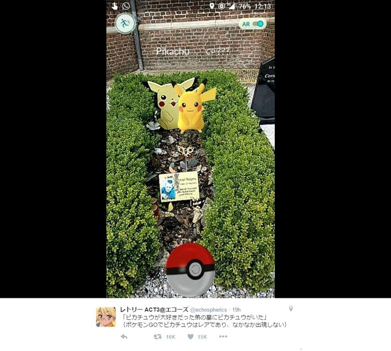 The next item on our list is not a PokeStop, but a stop by a Pokemon on the grave of what must have been the biggest Pikachu fan on earth. This is the tomb of a young man who died extremely young – apparently the brother of @Echospherics, and a lifelong fan of Pokemon.