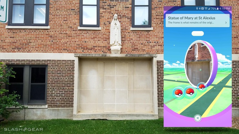 This is another example of a bit of an edit that Niantic will have to make eventually. The landmark that's being marked by a PokeStop is no longer in the place where the marker resides.